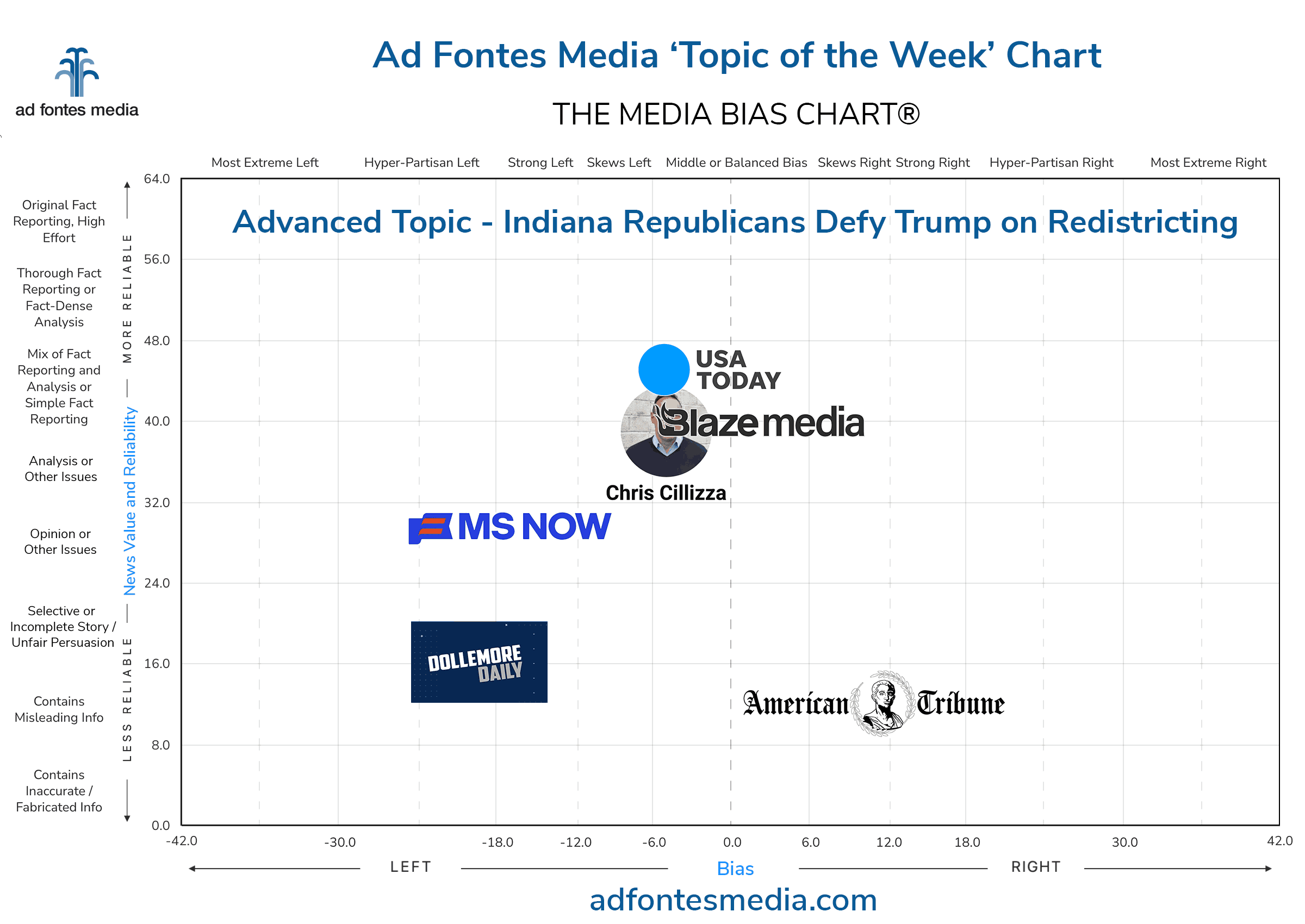 | MS NOW | MSNBC (website)– Trump pretends his power-grab flop in Indiana wasn’t humiliating (but it was) | -16.67 | 29.67 |